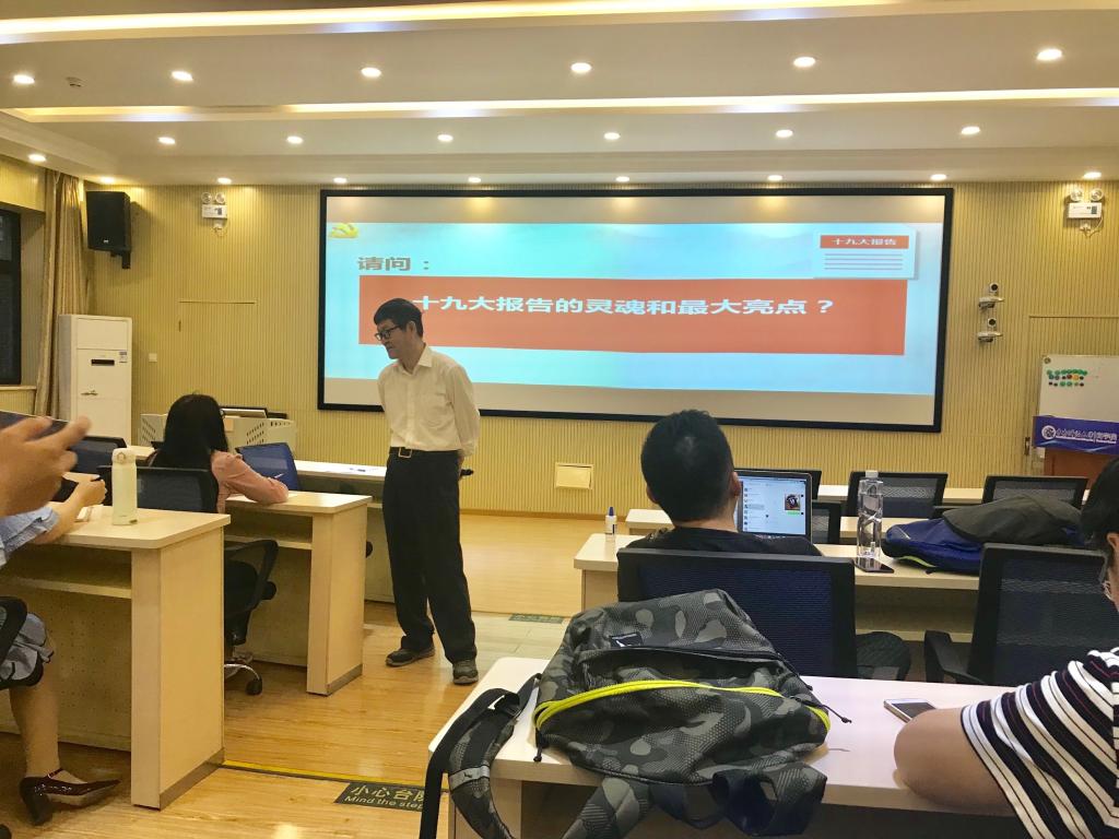 5月8号晚19:00-21:00,公司党委于MBA中心阶梯教室组织积极分子专题理论课,马克思主义公司申晓若老师为beat365亚洲体育MBA积极分子带来主题为《实现中华民族伟大复兴的行动指南——从党的十九大看习近平新时代中国特色社会主义思想》的课程,公司党校班主任王婷婷老师参与并主持。