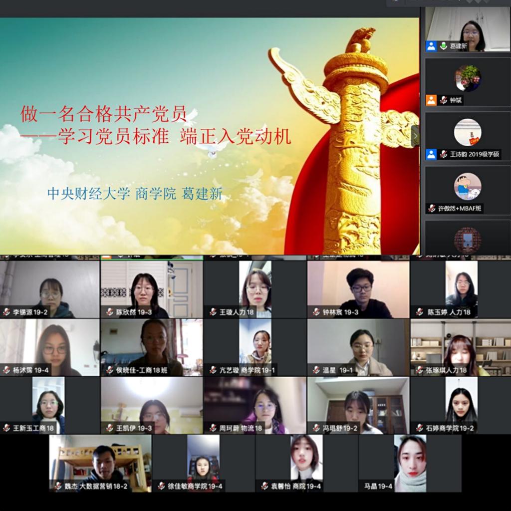 在主题党日中,积极分子集体观看了纪录片《同心抗“疫”——人民至上》,并共同学习了党章内容。在交流讨论中,积极分子围绕“谈谈你印象最深的优秀共产党员事迹,如何努力加入中国共产党”研讨主题,进行了体会和感悟交流。2020级学硕班的梅雨佳同学谈到:“在线上培训课程中,我印象最深的一句话是,多数人因看见而选择相信,但是少数人因相信而看见,中国共产党人就是这样的存在,因为坚守信仰,所以步履不停地艰苦奋斗、不畏困难,在各行各业、各个岗位上发光发亮,为着理想向前迈进。”市场营销2017级本科生陈梦迪同学说:“我身边的党员虽然大都是生活中平凡的一员,但是他们都在平凡的工作岗位上兢兢业业、甘愿奉献自己的青春与心血。在今后的学习工作与生活中我也会以身边的这些党员作为自己学习的榜样,会坚持自己的初心,投身社会,在实践中不断锻炼自己,在公司里认真学习、努力成长为党组织需要的人才。”大数据营销2018级本科生魏杰同学说:“做实事,真做事,这是我认为成为共产党的第一关,我认为只有这样才能做努力做葛老师说的勇于充当表率,起带头作用的合格的积极分子。”工商管理类2019级本科生温星同学说:“为了早日加入中国共产党,我们应该舍得‘荣誉’值得‘平凡’,舍得‘索取’值得‘吃亏’,舍得‘回报’值得‘奉献’,舍得‘艰苦’值得‘付出’。”