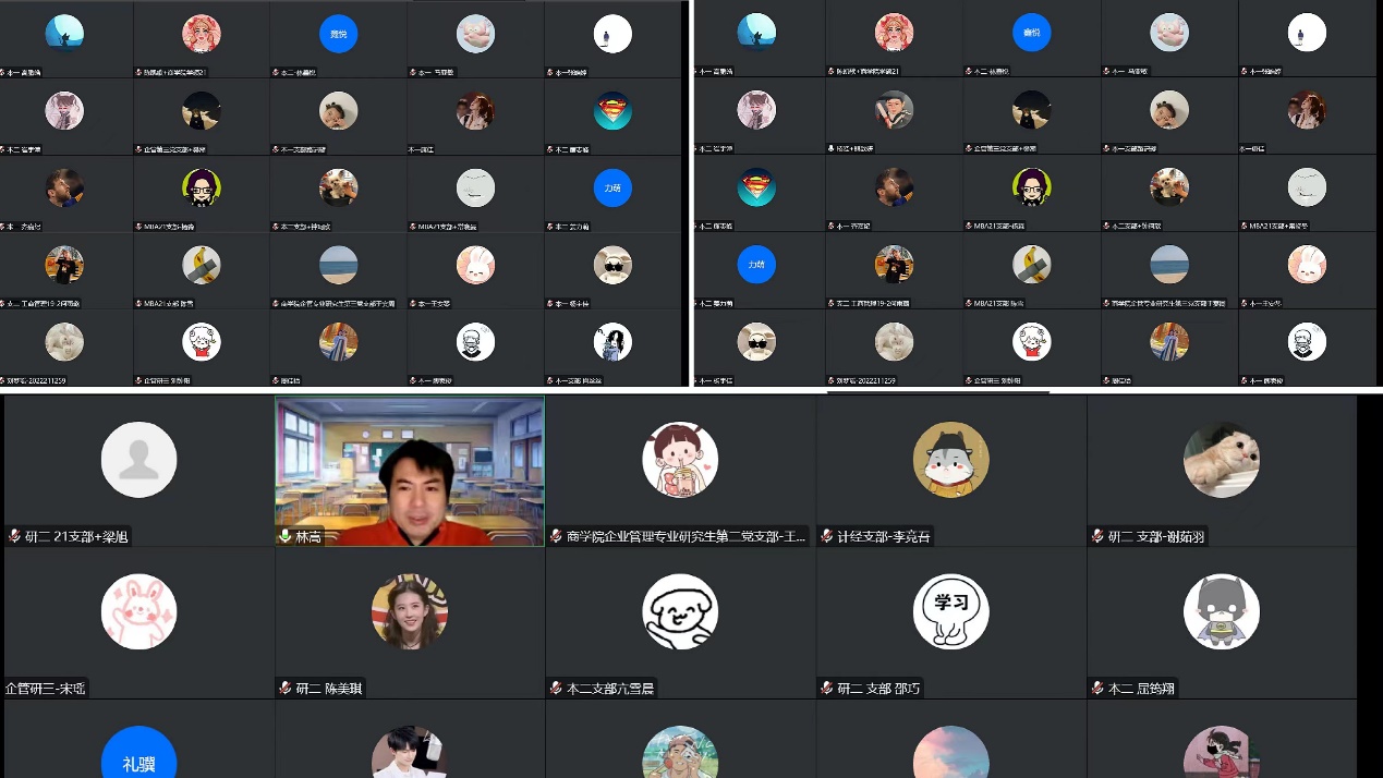 2022年12月2日中午12:30,公司党委党校“书记讲党课”通过腾讯会议的形式开展,beat365亚洲体育经理兼MBA教育中心主任、公司党委副书记、公司学习宣传党的二十大精神师生宣讲团专家代表林嵩教授带来“构建多层次创业知识体系,推进社会经济活动蓬勃发展”的主题课程讲授。本次专题党课由党务干事窦宗玥老师组织,公司54名发展对象、积极分子参加学习。