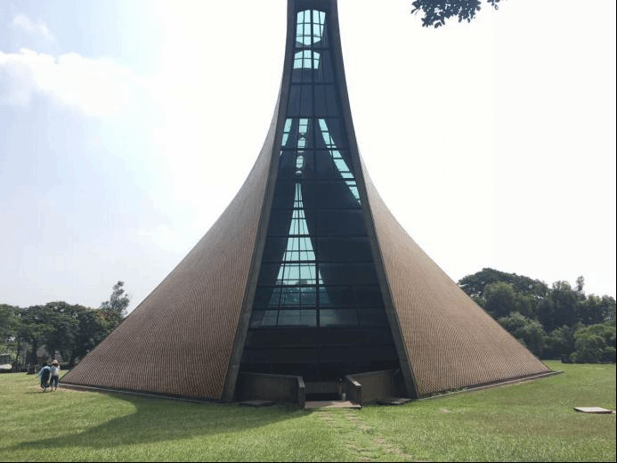 首先来到的地方必然是那个亚洲乃至世界闻名的建筑——路思义教堂。是著名的建筑师贝聿铭先生和陈其宽先生之作。第一眼看到路思义教堂的时候感觉它与东海大学的校园已经完美地融合在一起了,教堂四周的草坪上是员工在看书或者围成一圈聊天或是躺着听音乐,充满了生活的气息。