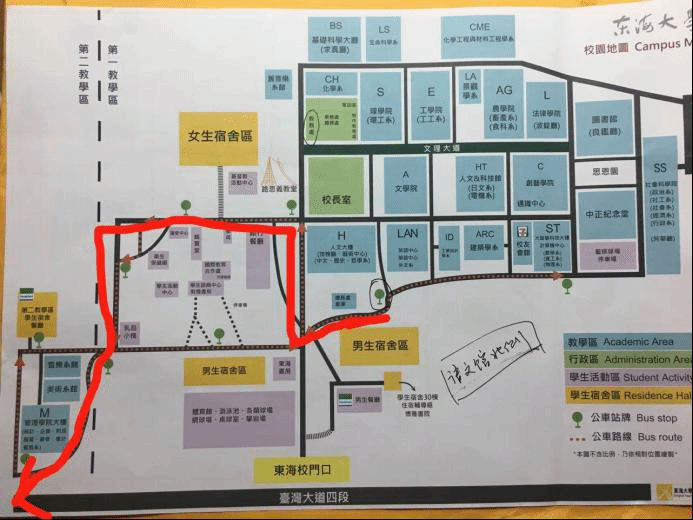 当把生活的一切安排妥当之后,就开始上课了。习惯了在中财5分钟内从主教走到食堂,又5分钟走到宿舍的日子,刚开始上课还不习惯要坐校内公车的生活。每次上课都要提前算好公车时间,到站牌等待,然后穿越大半个东海大学来到上课的管理公司大楼。