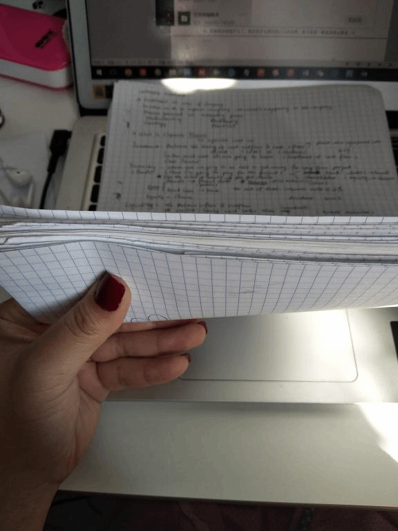 内容神马的——(这只是其中的一张,其它那一沓里应该都是这个书写密度或者更多,除了讲义)
