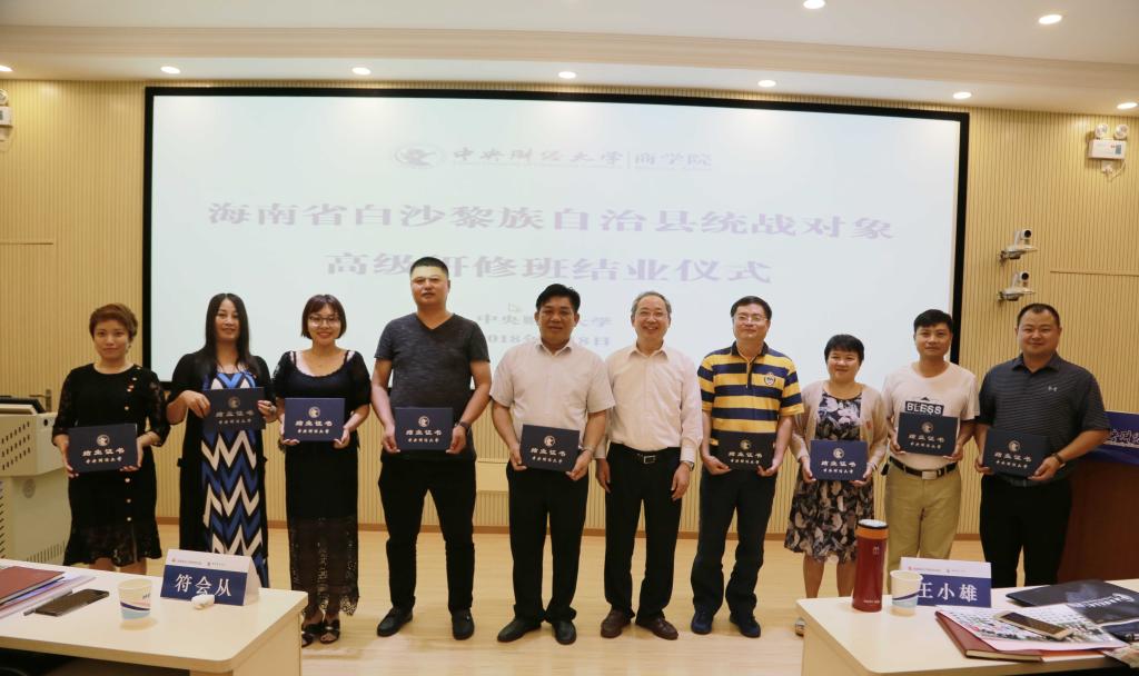 至此,海南省白沙黎族自治县统战对象高级研修班的50名学员圆满完成全部课程学习,顺利获得了体育365官网颁发的结业证书。