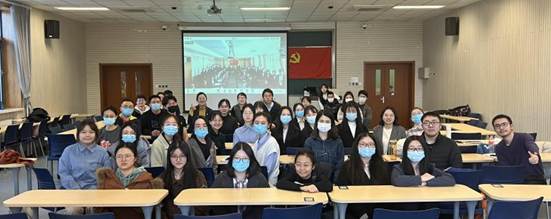 新疆财经大学国际经贸公司副经理王生辉老师进行十九届六中全会导学。王老师介绍了自己对于党的十九届六中全会重大意义的认识和理解,并希望两个支部的同学们通过此次联学,进一步坚定政治信念、刻苦学习,将个人理想融入国家发展大业。