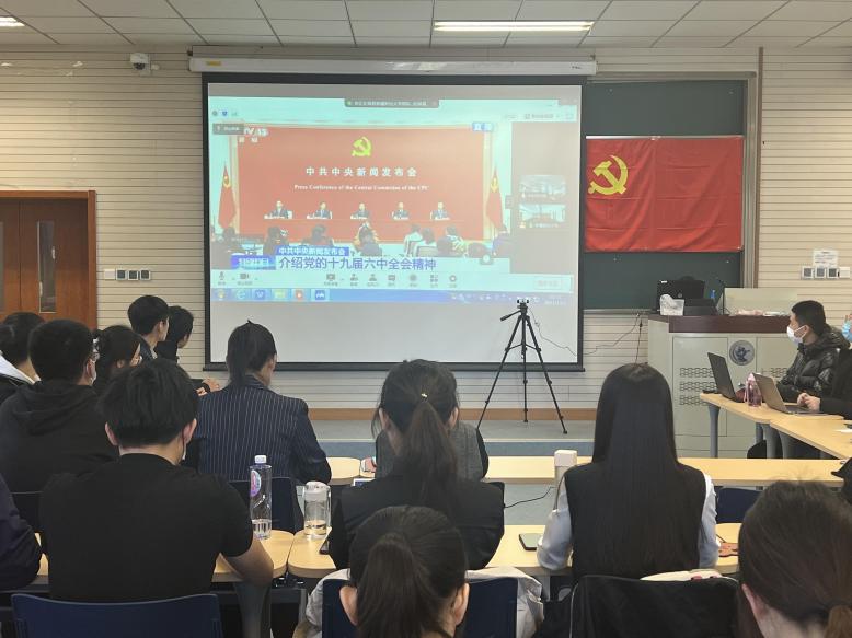 联学活动以全体人员观看中共中央新闻发布会的视频内容开始,共同学习十九届六中全会精神。