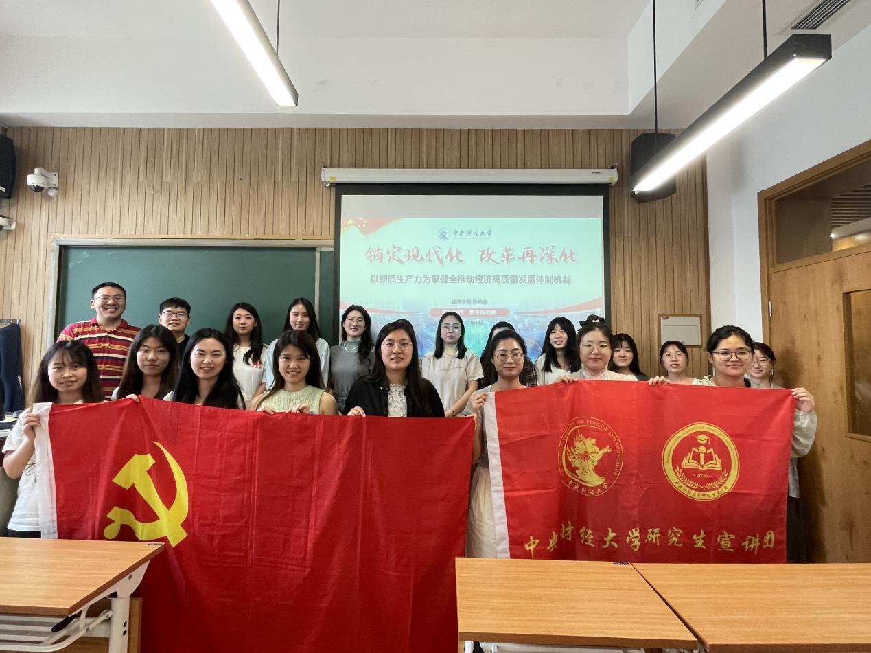 在第一个宣讲“锚定现代化,改革再深化——以新质生产力为擎 健全推动经济高质量发展体制机制”中,张屿涵同学围绕着高质量发展的时代背景、新质生产力的实践路径及体制机制的制度保障展开,深入阐释了高质量发展是中国式现代化的首要任务,强调新质生产力作为推动发展的关键引擎,正在通过科技创新、产业升级和公共服务改善,持续释放澎湃动能。同时,她系统梳理了健全发展体制机制的重点方向,包括健全因地制宜发展新质生产力体制机制、加强实体经济和数字经济深度融合、推动服务业优质高效融合、推进现代化基础设施建设、提升产业链供应链韧性和安全水平等,进一步夯实高质量发展的制度基础。
